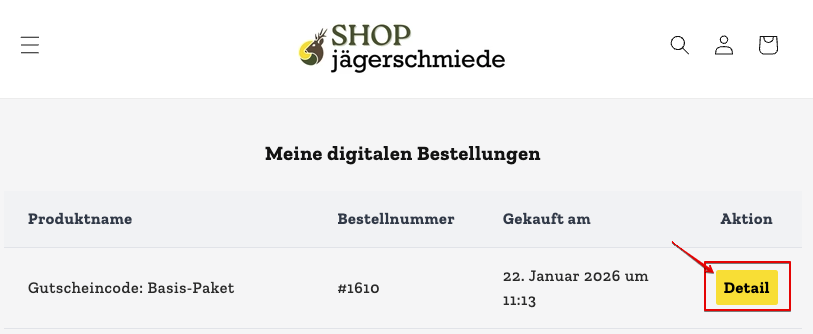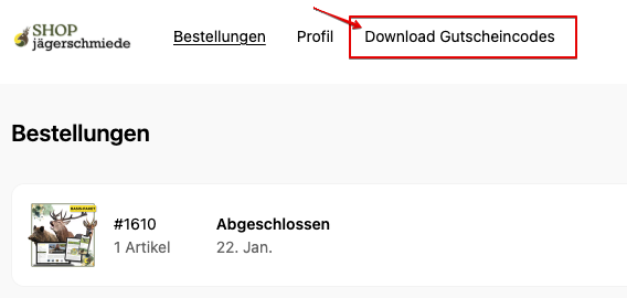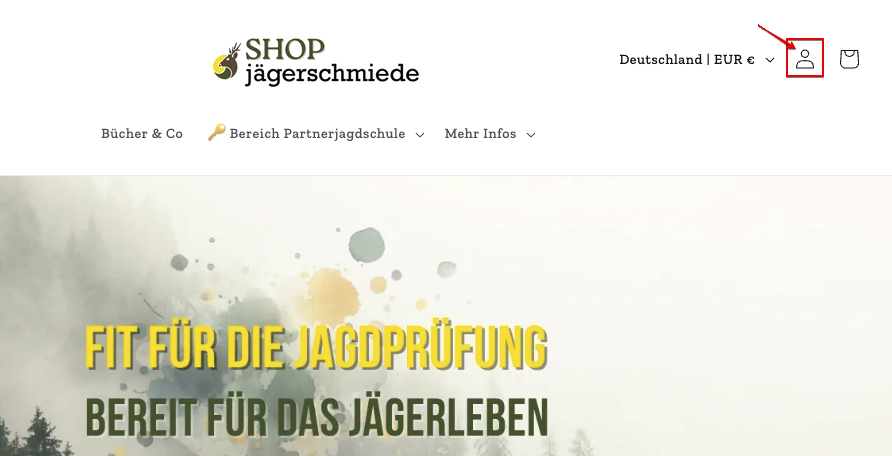 Auf unserer Shop-Seite: www.jaegerschmiede-shop.de kannst du dich in dein Kundenkonto einloggen (oben rechts "Symbol Kundenkonto").